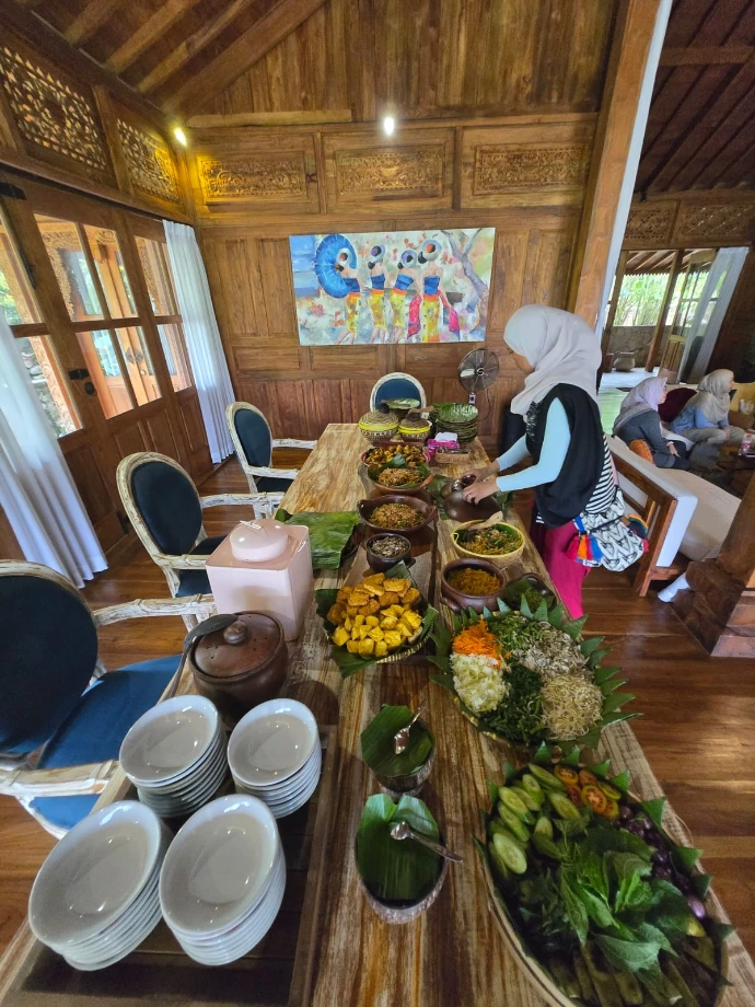 Teh Omah has been cooking authentic Sundanese food for guests at Joglo Omah Kempalan for years. She is the reason the food is always the first thing people mention when they describe the retreat.