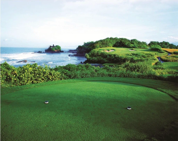 New Kuta is one of the most dramatic golf settings in Asia. Perched on the limestone cliffs of the Bukit Peninsula, the course plays across a headland above the Indian Ocean — a genuine clifftop links experience in the tropics. Several holes play directly along the cliff edge, with the ocean filling the peripheral vision and the trade winds adding a variable that no practice round can fully prepare you for. Designed by Peter Thomson and Ronald Fream, New Kuta demands a complete game: power into the wind, precision when the holes turn coastal, and the composure to enjoy one of the most spectacular backdrops in world golf without losing your focus.