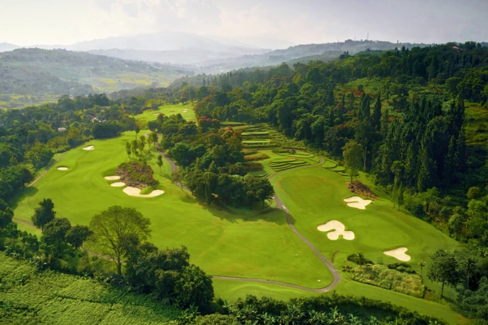Rancamaya is the most visually iconic course on the circuit. Designed around the natural contours of the Ciawi valley, the layout builds steadily toward one of the most photographed finishing sequences in Indonesian golf — a closing hole played directly toward the silhouette of Gunung Salak. The volcano does not merely provide scenery; on clear mornings it dominates the horizon from the 18th tee in a way that makes it almost impossible to keep your head down. A course with genuine character and a finish that justifies the entire round.